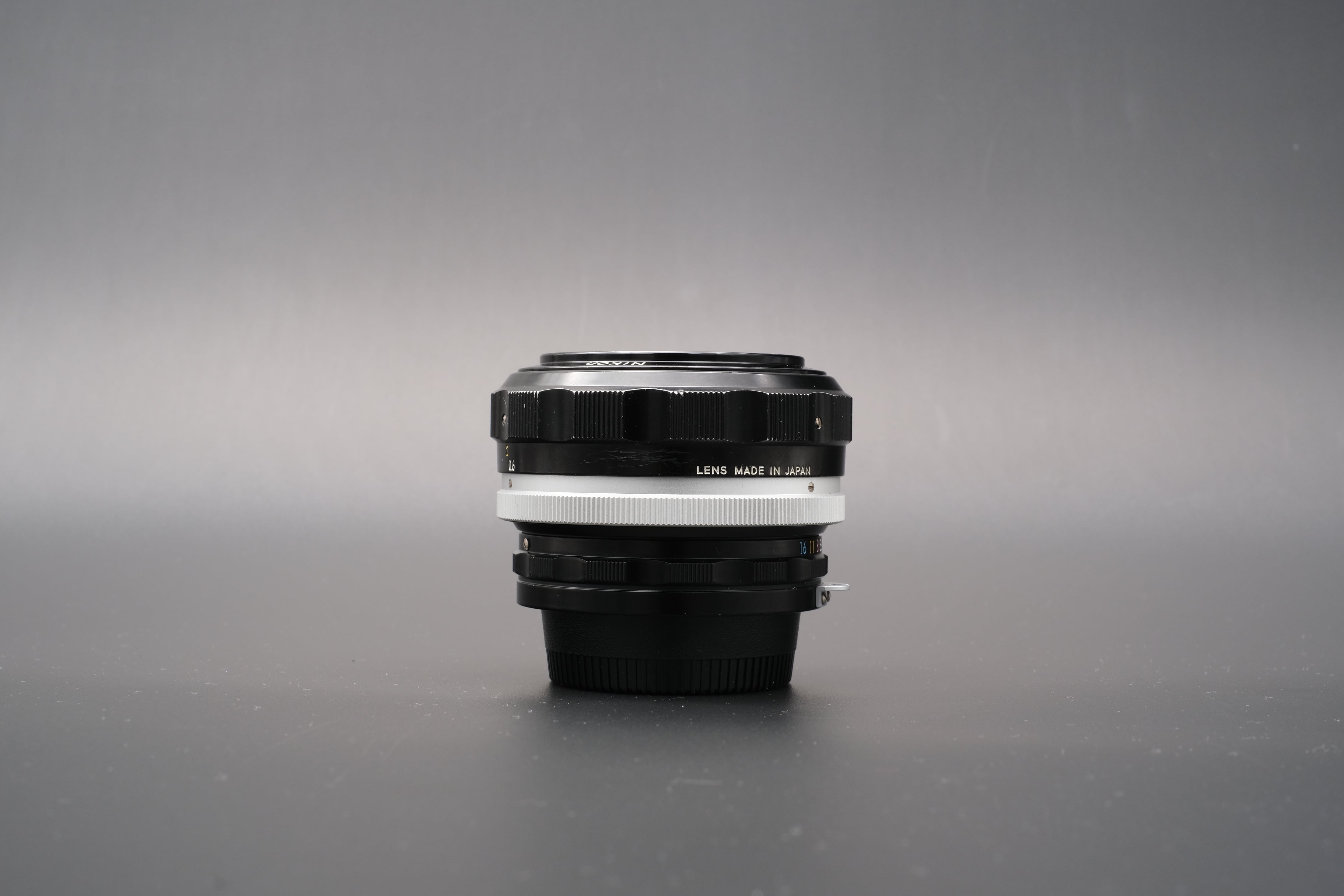 明るさの増加にともない、バックフォーカスが短くなる傾向があるので、無理をせず焦点距離を55mmにとってあります。F1.4とF 1.2では実用上大差ないようにも思えますが、ファインダー像では明らかに差があり、当時のニッコールレンズ中で最高の明るさが得られました。